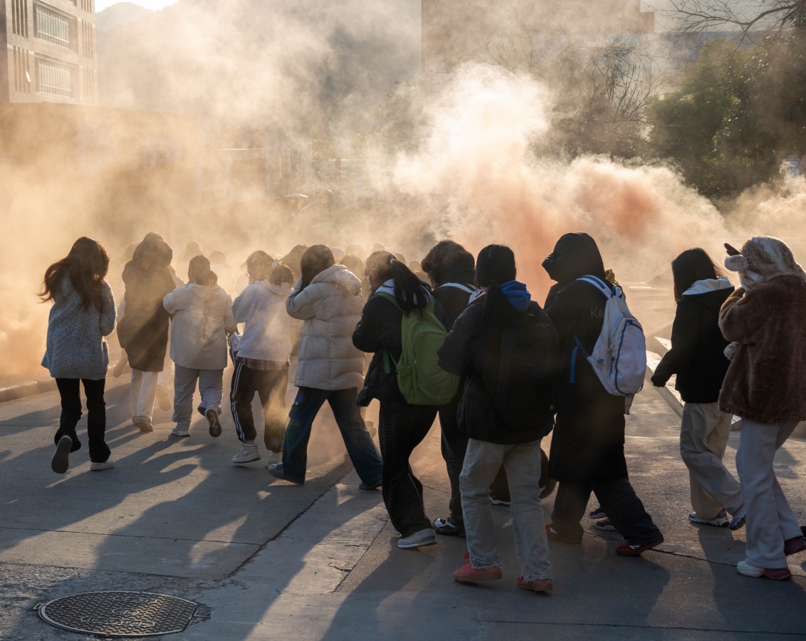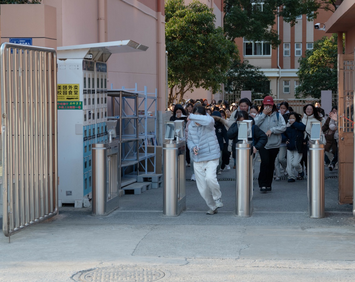 听到消防声光报警器发出警报后,宿舍管理员迅速启动应急预案,迅速打开宿舍楼消防通道、拨打“火警报警电话”,组织开展疏散逃生;同时通知保卫处,保卫处迅速组织校园应急救援小队有序指挥同学迅速撤离。最后在疏散集合地点集合,各楼层长、宿舍舍长迅速清点人数,并向指挥员报告疏散撤离情况,确定无人员遗漏或受伤情况。